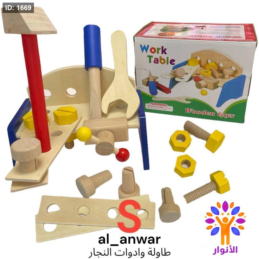 طاولة وادوات النجار الخشبية