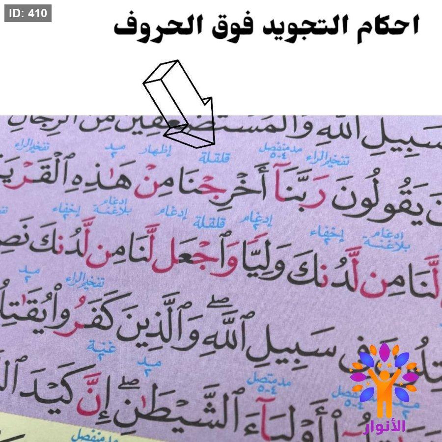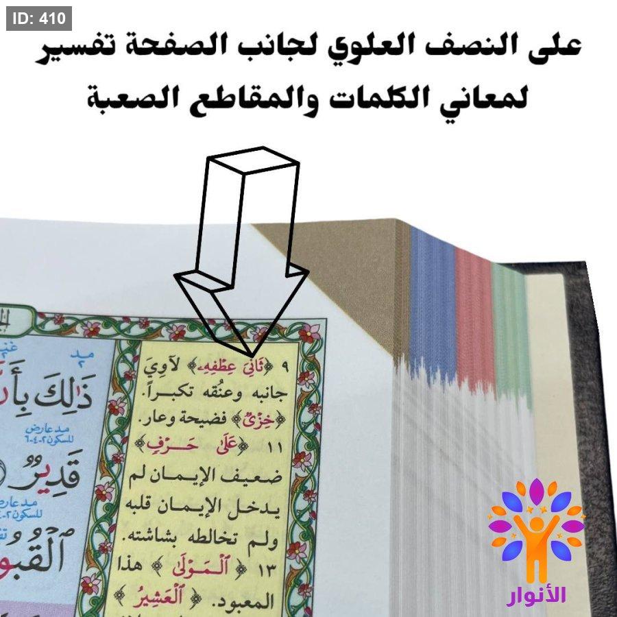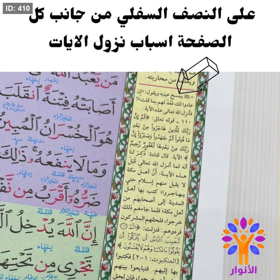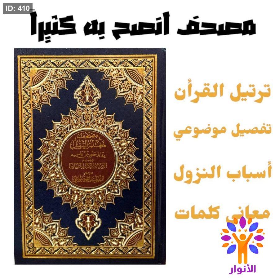 مصحف معلم التجويد وبهامشه التبيان لكلمات المنان مذيلاً بالتفصيل الموضوعي .